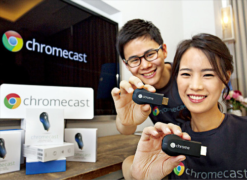 지난해 구글이 미국에서 발표해 눈길을 끈 초저가 미디어 스트리밍 기기 ‘크롬캐스트’가 국내에 들어왔다. 아시아 지역에서는 최초다. USB를 닮은 손가락 크기의 이 기기는 HDMI 단자가 달린 어떤 모니터든 ‘꽂기만 하면’ 스마트폰 태블릿PC와 연동되는 스마트 TV로 만들어준다. 크롬캐스트의 국내 출시가는 4만9900원. 5만원도 채 안 되는 가격에 스마트 TV가 아닌 일반 TV와 PC 모니터 등에서 주문형비디오(VOD), 유튜브 등의 콘텐츠를 즐길 수 있다는 것은 큰 매력이다. 구글은 국내에 크롬캐스트를 지난 14일 출시하면서 N스크린 서비스인 CJ헬로비전의 ‘티빙’, SK플래닛의 ‘호핀’과 손잡았다. 구글플레이와 G마켓, 롯데하이마트, 옥션에서 살 수 있는 이 제품의 특징을 알아봤다.