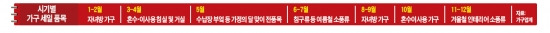 국내 유명 가구 브랜드는 통상 1~3월엔 자녀방 가구, 3~4월엔 신혼가구 위주로 할인 행사를 연다. 신학기를 맞아 1~3월에 책상이나 책장 등을 사려는 사람이 많고, 봄에는 결혼, 이사에 따른 수요가 늘어나기 때문이다. 5~6월엔 거실과 붙박이장, 부엌가구를 중심으로 세일 상품을 구성한다. 여름과 겨울에는 침구류, 소품, 계절 상품을 싸게 판매한다.