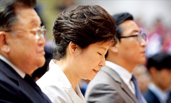 박근혜 대통령이 1일 서울 명일동 명성교회에서 열린 ‘세월호 참사 위로와 회복을 위한 한국교회연합기도회’에 참석해 기도하고 있다. 박 대통령은 신도들을 상대로 한 인사말에서 “우리 사회에 이어져 온 적폐를 해소하고 새 대한민국을 만들기 위해 혼신의 힘을 다하는 것이 국민들에 대한 책무”라고 말했다.