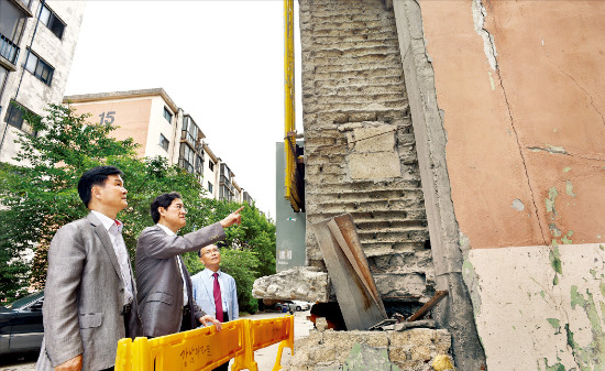 이날 동행한 전재열 단국대 건축공학과 교수(대한건축학회 부회장)는 “어떻게 이런 곳에서 사람이 살게 놔두나”라며 혀를 찼다. 건물안전진단 전문가인 안무영 한국건설안전협회장은 “30여년간 건물안전진단 일을 했지만, 이 정도로 심각한 곳은 보지 못했다”고 말했다.