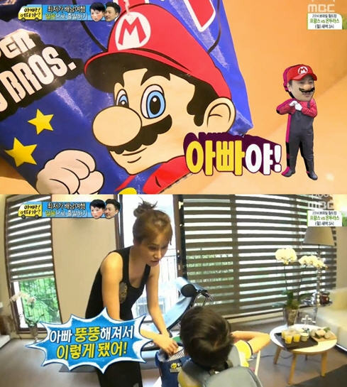이어 그는 도시락 가방에 그려져 있는 통통한 슈퍼마리오를 가리키며 아들 리환에게 "이거 누구야? 아빠야…"라며 "뚱뚱해져서 이렇게 됐어"라고 전했다. 더불어 이혜원은 "옛날에는 테리우스였는데… (지금은) 개뿔"이라고 외쳐 시청자들을 웃음바다로 만들었다.