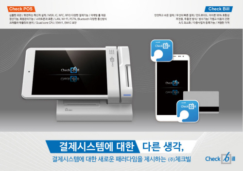 한편 체크빌은 스마트폰 카드단말기 ‘체크빌’을 전국 대리점과 ‘체크빌 마스터’에 스마트폰 카드단말기 ‘체크빌’을 무상공급하는 무자본 창업 아이템으로 각광받으며 2013년도에만 약 4만 여대를 공급한 실적을 올린 바 있다. 이 제품은 스마트폰만 있으면 손쉽게 결제처리를 할 수 있으며 전용 애플리케이션을 이용하면 고객관리까지 가능하고 제품 자체의 내구성도 뛰어난 것이 장점이다.