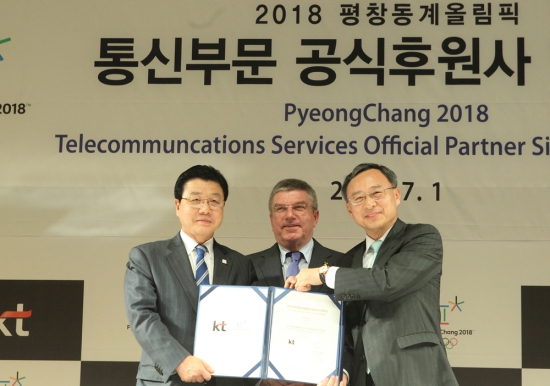 2018 평창동계올림픽 및 장애인동계올림픽대회 조직위원회와 KT는 1일 KT 광화문사옥 올레스퀘어 드림홀에서 '통신 부문'에 대한 공식후원사 협약식을 개최했다.
