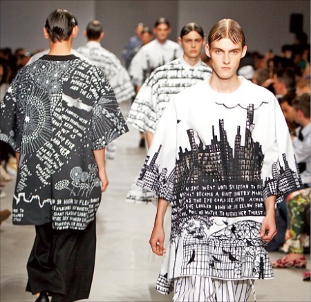 해외 무대에서 뛰는 한국 디자이너들은 어떤 작품을 내놨을까. 우영미의 컬렉션은 기존 작품과는 확연히 다른 자유분방한 느낌이 돋보였다. 준지의 디자이너 정욱준은 ‘옥스퍼드’를 주제로, 전통 슈트와 스포츠 의류의 경계를 넘나드는 창의적인 남성복을 선보여 주목받았다.