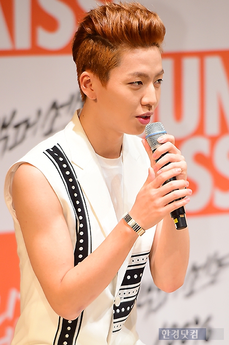[진연수 기자] 그룹 백퍼센트 찬용이 7일 오전 서울 광화문 올레스퀘어에서 열린 '쿨 썸머 앨범 '썬키스'(Cool Summer Album 'SUNKISS') 쇼케이스에 참석해 질문에 답하고 있다.