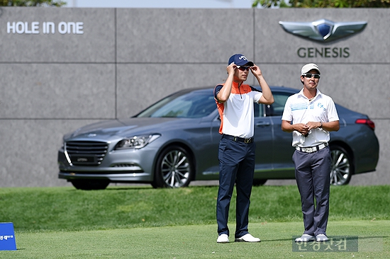 [변성현 기자] 10일 인천 영종도 스카이72 골프클럽 하늘코스에서 개막한 '야마하·한국경제 2014 KPGA선수권대회'(총상금 10억원·우승상금 2억원) 1라운드 경기에 참가한 김대현(캘러웨이), 박재범이 16번 홀에서 코스를 바라보고 있다.