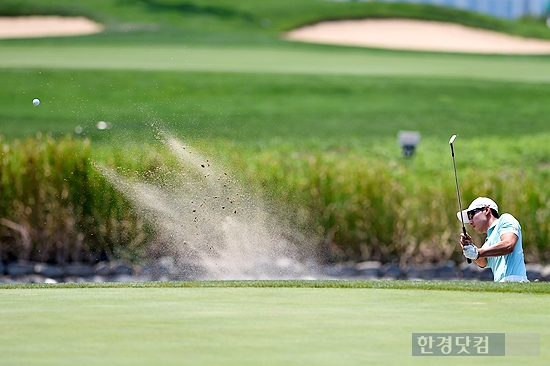 [변성현 기자] 11일 인천 영종도 스카이72 골프클럽 하늘코스에서 개막한 '야마하·한국경제 2014 KPGA선수권대회'(총상금 10억원·우승상금 2억원) 2라운드 경기에 참가한 홍순상(SK텔레콤)이 3번 홀에서 벙커샷을 하고 있다.