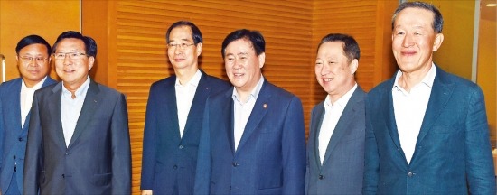 간담회의 시작은 화기애애했다. 최 부총리가 “신고식을 겸해 회장님들께 인사차 왔다”고 하자 경제단체장들은 2기 경제팀의 성공을 바란다는 덕담을 건넸다. 이어 최 부총리는 “수년째 저성장이 지속되는 등 우리 경제의 어려움을 해결하는 건 정부 노력만으로는 한계가 있다”며 “기업들이 경기회복의 불씨를 되살리기 위해 기업가정신을 가지고 투자와 일자리 창출에 나서줘야 한다”고 요청했다.