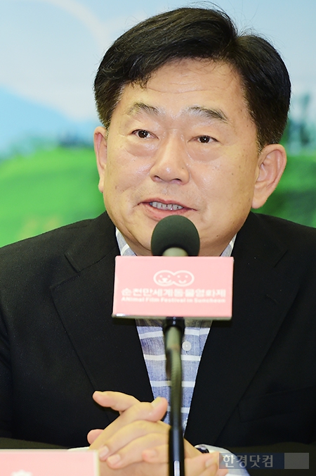 [진연수 기자] 조충훈 순천 시장이 29일 오전 서울 태평로 프레스센터에서 열린 '제2회 순천만세계동물영화제' 기자회견에 참석해 인사말을 하고 있다.