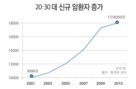 암은 지금 세계적으로 발병자의 수가 늘어나고 있는 추세이며, 우리나라 또한 암 발병률이 상승하는 추세이다. 2001년 한해 동안 암이 발병한 환자의 수는 111,234명으로 10년이 지난 2011년의 한 해간의 암 발병자 수는 218,017명으로 10만명 이상 증가했다. 그 덕에 젊은 층의 암 발병도 높아지고 있고, 고령화 영향으로 발병연령이 길어지고 있다.