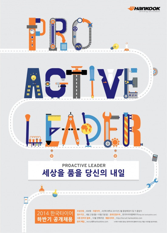채용기간 동안에는 △한국타이어 연구소 및 공장제조시설 등을 견학하는 '프로액티브 랩 투어' △기술세미나 △찾아가는 채용설명회 △잡카페 등이 운영된다.