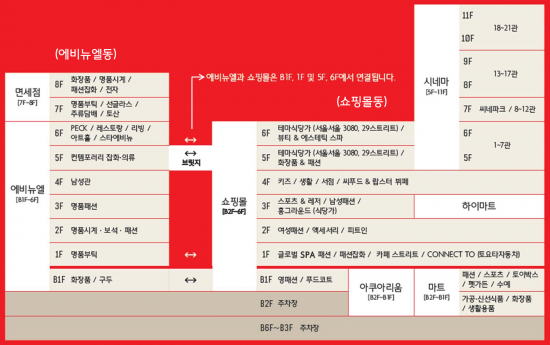 국내 최대 명품백화점인 애비뉴엘에는 225개 브랜드가 들어선다. 에르메스, 샤넬, 루이비통 등 세계 3대 명품 브랜드는 국내 최대 수준의 플래그십 매장으로 선보인다. 또 그동안 국내에 선보인 적이 없는 H.Stern, 유보트, 포멜라또, PECK 등 총 33개 브랜드의 매장도 마련했다.