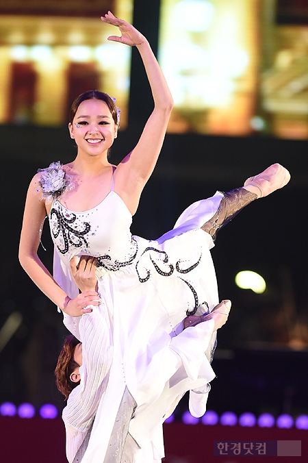 [변성현 기자] '제17회 인천 아시안게임' 리듬체조 개인 종합 금메달리스트 손연재와 발레리노 윤전일이 18일 오후 경기도 고양시 일산 킨텍스 제2전시장에서 열린 'LG휘센 리드믹 올스타즈 2014'에 참석해 공연을 펼치고 있다.
