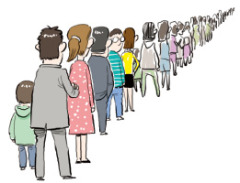 옛 소련에선 국민들이 생필품을 구하기 위해 연간 400억시간을 줄서기로 허비한다는 분석이 있었다. 약 3억명 인구 중 어린이, 학생, 노약자 등을 빼면 1인당 연 200시간 이상 줄을 선 셈이다. 특히 주부들의 줄서는 시간은 하루 5시간을 넘었다고 한다. 줄서기가 습관이 됐기에 어디 가나 줄이 있으면 이유도 모른 채 맨 뒤에 선다는 우스갯소리도 있었다. 하염없는 줄서기는 곧 사회주의 계획경제의 상징이 됐다.자원배분 방식으로서 줄서기는 매우 비효율적이다. 시간도 돈만큼 가치가 있는데 온전히 허비하게 만드는 탓이다. 따라서 시장경제 체제에선 줄서기 회피수단을 다양하게 강구해 왔다. 은행 번호표, 놀이공원 패스트트랙, 예매, 예약 등이 그런 사례다. 버스나 화장실 한 줄 서기처럼 시민들 스스로 관행화한 줄서기도 있다.