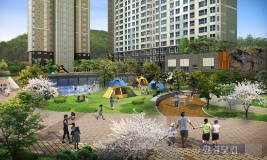 대지면적에 대한 건축면적의 비율인 건폐율이 17%로 낮은 편이다. 그만큼 동간거리가 넓고 쾌적하다는 얘기다. 동간 거리가 여유로운 곳에는 입주민들을 위한 휴식공간이 들어선다. 어린이 놀이터, 휴게공간, 운동시설, 캠핑장, 분수 등이 설치될 예정이다.