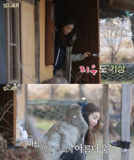 한편, 이날 ‘삼시세끼’에서 최지우는 뜨끈한 아랫목에서 하룻밤을 보냈다. 아침에 최지우는 일어나 아직 손호준과 이서진이 깨어나지 않은 것을 확인하자 다시 이불 속으로 들어갔다. 잠시 후 밖으로 나온 최지우는 화장기 없는 청순한 민낯을 드러내기도 했다.