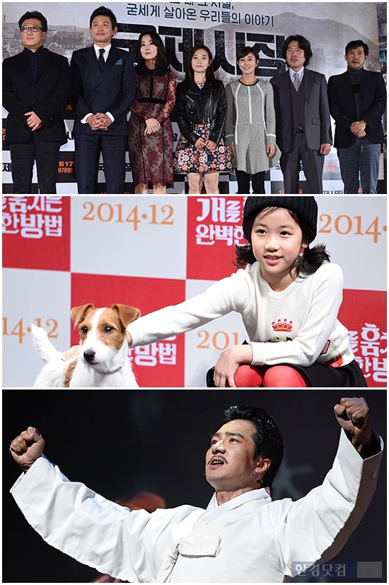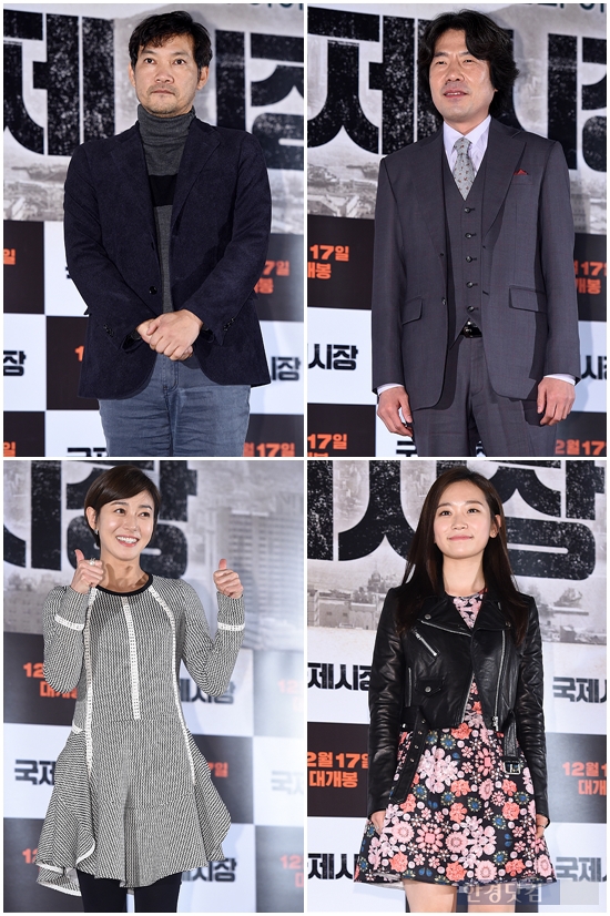 영화 '국제시장'(감독 윤제균, 제작 ㈜JK필름)의 언론 시사 및 기자간담회가 24일 오후 서울 행당동 CGV왕십리에서 열렸다. 황정민, 김윤진, 오달수, 정진영, 장영남, 라미란, 김슬기 등이 출연하는 '국제시장'은 1950년대부터 현재에 이르기까지 시대를 관통하며 살아온 아버지를 통해 오늘을 살아가는 우리들의 삶을 재조명하는 영화로 오는 12월 17일 개봉 예정이다.