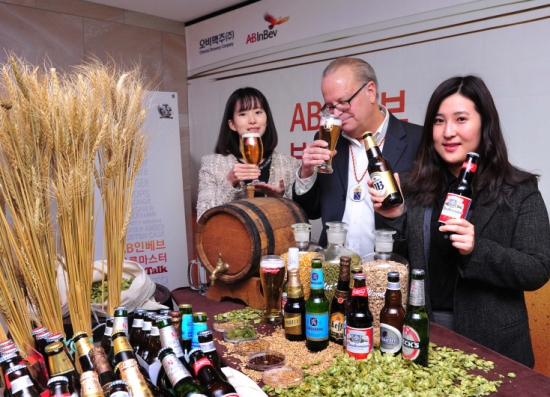 오비맥주는 18일 서울 충무로에서 'AB인베브 브루마스터 비어 토크' 행사를 열고 '맥주 만들기 동호회'와 일반 소비자들을 대상으로 맥주 맛과 제조법 등에 대해 공개 강연을 진행했다.