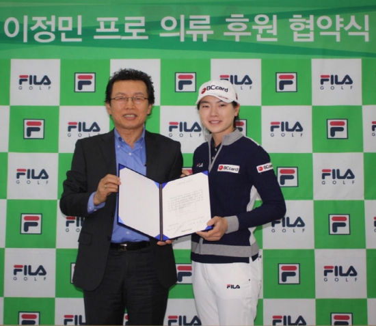 휠라 골프(FILA GOLF)는 6일 오후,서초동 사옥에서 협약식을 갖고 후원 계약을 체결했다고 7일 밝혔다. 협약식에는 이기호 휠라코리아 사장과 이정민 프로 등 양측 관계자가 참석했다. 이정민 프로는 2016년 까지 2년간 대회에 필요한 의류를 지원받는다.
