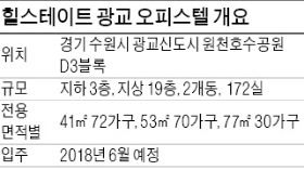 현대엔지니어링은 경기 광교신도시 원천호수공원 D3블록에 ‘힐스테이트 광교’ 주거형 오피스텔을 이달 중 공급한다. 지하 3층~지상 49층의 8개동으로 구성된 아파트와 주거형 오피스텔, 상가로 이뤄진 복합단지다. 지난해 12월 분양한 ‘힐스테이트 광교’ 아파트(928가구)는 1순위에만 1만6688명이 몰리며 평균 20 대 1의 높은 청약경쟁률을 기록했고 계약이 완료됐다.