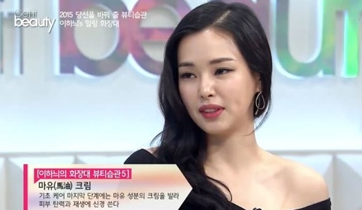 지난 4일 방송된 온스타일 채널의 '겟잇뷰티 2015'에서 이하늬는 마유크림을 애용한다고 밝혔다.