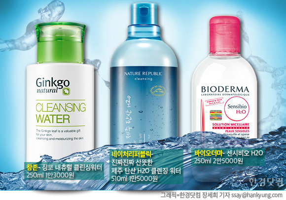 시험 제품은 바이오더마의 센시비오 H2O, 네이처리퍼블릭의 진짜진짜 산뜻한 제주 탄산 H2O 클렌징워터, 참존 징코 내추럴 클렌징워터이다.