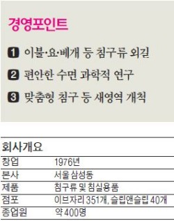 “지난해 5월 ‘슬립앤슬립(Sleep & Sleep)’을 시장에 내놓은 것은 이런 패러다임 시프트를 겨낭한 것”이라고 서 대표는 밝혔다. 그는 “이미 40개 대리점을 개설했고 연내에 이를 185개로 늘릴 계획”이라고 덧였다.