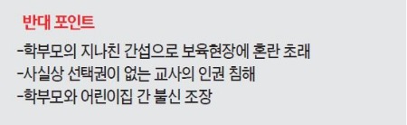 반대 / “학부모의 지나친 간섭으로 보육현장에 혼란 야기할 것”