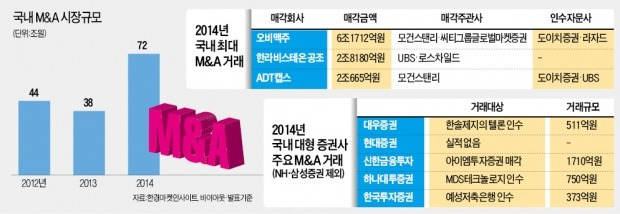 1997년 외환위기 이후 한국 증권업계는 줄곧 ‘IB 후진국’이란 평가를 들어야 했다. 기업 인수합병(M&A) 자문이란 용어가 국내에 생소하던 시절 쏟아지는 기업과 은행 매물은 외국계 증권사의 독차지였다. M&A 자문시장을 독식한 외국계 증권사는 매각가의 4~5%를 수수료로 받으며 거래 한 건당 수백억원씩을 벌어들였다. 2000년대 중반 우리투자증권(현 NH투자증권) 대우증권 삼성증권 등 국내 대형 증권사들이 뛰어들면서 비로소 외국계 증권사의 독과점이 깨지기 시작했고 수수료는 1% 수준으로 떨어졌다.