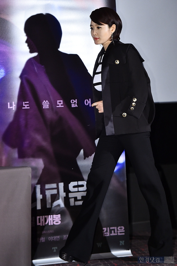 또 한 명의 스타 전도연은 23일 서울 신사동 CGV압구정에서 열린 영화 '무뢰한'(감독 오승욱, 제작 ㈜사나이픽처스) 제작보고회에 참석했다. 블랙 밀착 원피스에 붉은 벨트로 포인트를 준 전도연은 의상보다 여전히 변함없는 아름다운 미소로 시선을 끌었다.