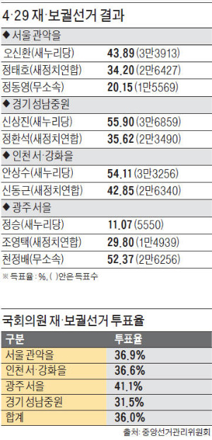 선거 막판 새정치연합이 집중적으로 꺼내든 ‘정권심판론’ 카드 역시 유권자의 외면을 부추긴 결정적인 요인이 됐다는 분석이다. 당리당략과 진영논리에 매몰돼 경제 활성화 법안 처리를 뒷전으로 미루는 야당에 대한 실망감도 복합적으로 작용한 것이라는 얘기다. 새정치연합 관계자는 “‘성완종 리스트’를 정권심판론으로 연결해 여권을 압박하는 선거 전략에 너무 치중하면서 우리 당의 자체적인 비전을 제대로 보여주지 못한 게 패인인 것 같다”고 말했다.