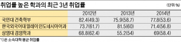 명문대가 아니고, 취업이 잘되는 ‘전·화·기(전자·화학·기계공학과)’도 아닌데 이들 못지않게 취업이 잘되는 학과가 있다. 취업률이 높아지자 우수한 학생이 알아서 들어와 인기 학과로 부상하는 선순환도 이뤄지고 있다. 바로 상명대 경영학과, 국민대 건축학부, 한국외국어대 말레이인도네시아어과 얘기다. 이들 학과가 높은 취업률을 달성한 비결에는 제자의 취업을 위해 발벗고 뛰어다니는 교수와 동문의 촘촘한 네트워크, 그리고 대학의 전방위 지원 등 ‘3박자 공조’가 있었다.