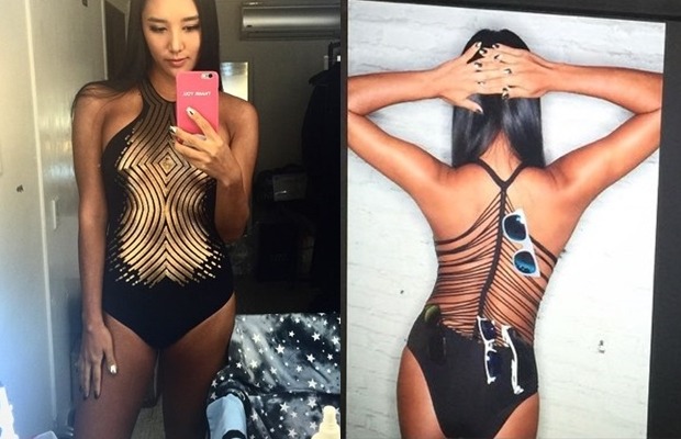 사진 속 정아름은 골드빛 장식의 원피스 수영복을 입고 탄탄한 몸매와 구릿빛 피부를 자랑하고 있다. 특히 가느다란 끈으로 된 아슬아슬한 뒷태의 원피스 수영복이 정아름의 근육질 몸매와 어우러져 아찔한 뒷태 라인을 뽐내고 있다.