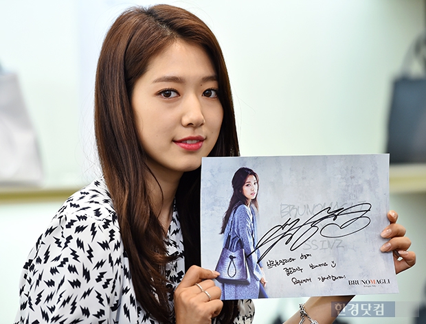 [ 진연수 기자 ] 배우 박신혜가 15일 오후 서울 명동 아틀리에 명동점에서 열린 이태리 패션 브랜드 '브루노말리'(BRUNOMAGLI) 뮤즈백 스페치오 씬즈 출시 기념 포토콜 행사에 참석해 포즈를 취하고 있다.