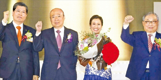 한화생명 연도상 시상식 최고상인 여왕상은 정미경 신울산지역단 다운지점 영업팀장(명예전무)에게 돌아갔다. 정 팀장이 거둔 지난해 수입보험료 실적은 200억원을 넘는다. 여왕상을 비 沌?신인상 등을 받은 설계사 6명은 이날 김 회장과 오찬을 함께했다.