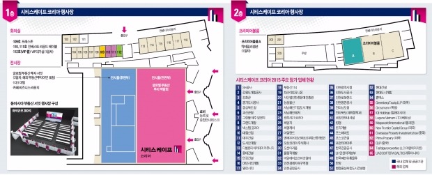 전시장 앞쪽에는 공공기관과 건설사들이 자리를 잡는다. 롯데의 롯데월드타워가 바로 눈에 들어온다. 정문 오른쪽에는 인천경제자유구역청, 인천도시공사 로봇랜드 등 8개 기관의 공동 홍보관이 마련된다.