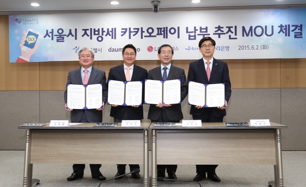 다음카카오는 2일 서울시청에서 서울특별시, LG CNS, 우리은행과 서울시 지방세 온라인 납부시스템에 카카오페이를 도입하기 위한 업무협약을 체결했다고 밝혔다.