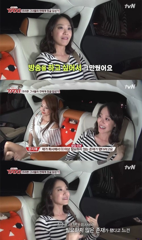 문지애는 "어쨌든 나는 그때 당시에 내 청춘을 모두 쏟아 부었던 회사에서 더 이상 내가 필요한 존재가 아니라는 생각이 들었다"고 말했다.