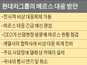 현대차그룹 관계자는 “메르스 확산 추이를 살펴가면서 그룹 차원에서 단계별로, 부문별로 철저히 대응해 메르스가 산업현장에 침투할 수 없도록 최선을 다할 것”이라고 말했다.