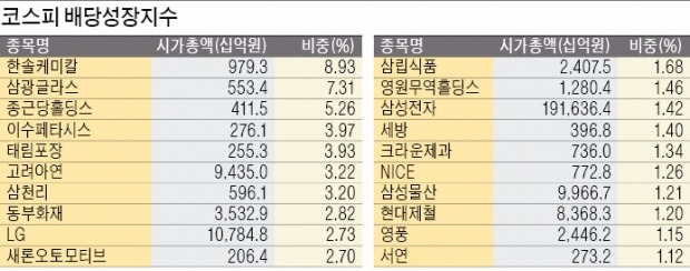 정부 정책에 발맞춰 거래소도 지난해 10월 신(新)배당지수를 발표하며 배당에 대한 관심을 환기시켰다. 거래소는 신배당지수의 기대효과로 고배당 종목의 주가 재평가 등 상장기업의 배당 확대를 꼽았다. 올해 들어서는 국민연금을 포함한 연기금도 배당주 투자에 열을 올리고 있다.