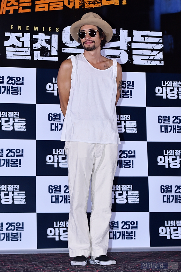 [ 진연수 기자 ] 배우 류승범이 17일 오전 서울 행당동 CGV 왕십리에서 열린 영화 '나의 절친 악당들'(감독 임상수, 제작 휠므빠말) 언론 시사 및 기자간담회에 참석해 포토타임을 갖고 있다.