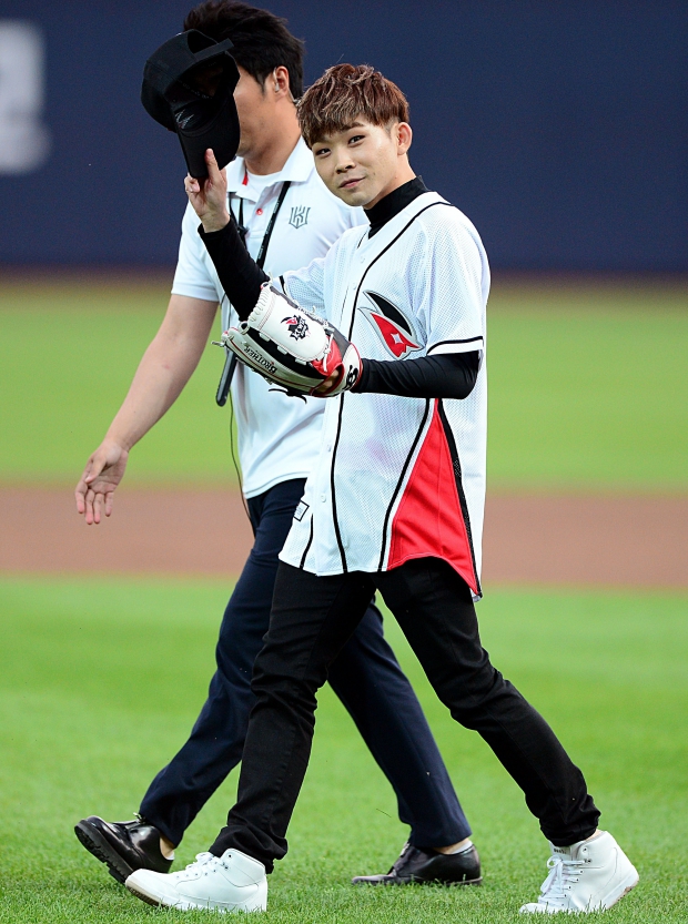 18일 수원 kt위즈파크에서 `2015 타이어뱅크 KBO 리그` kt 위즈와 NC 다이노스 경기가 열렸다. 시구자로 선정된 가수 백청강이 시구를 위해 마운드로 이동하고 있다.