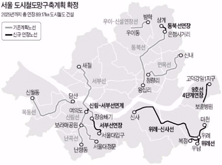 2025년까지 서울에 현재 운영 중인 지하철(327㎞)의 27%에 이르는 약 90㎞의 도시철도가 더 건설된다. 서울 전역에서 걸어서 10분 안에 지하철역에 닿을 수 있게 될 전망이다.