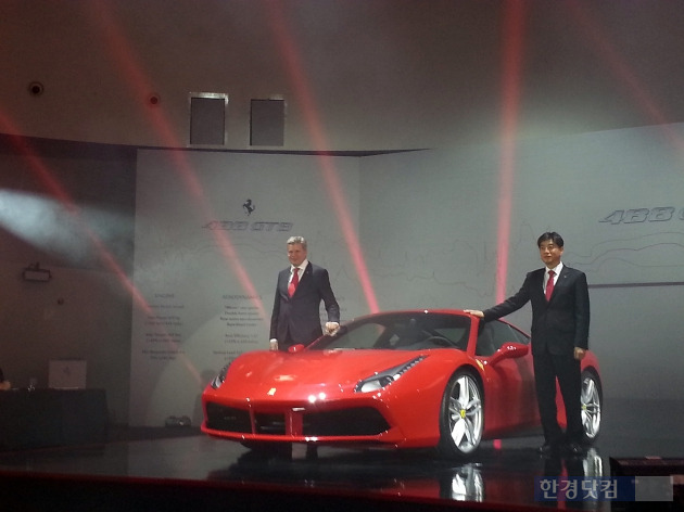 이날 페라리는 '488GTB'를 국내 출시했다. 488GTB에는 터보 V8 엔진과 7단 듀얼클러치 기어가 탑재됐다. 최고출력 670마력, 최대토크 77.5kg·m의 힘을 낸다. 가속 페달 반응시간은 0.8초, 기어 반응시간은 0.06초다. 최고 속도는 330km/h, 정지상태에서 100km/h까지 걸리는 시간은 3초다.