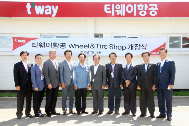티웨이항공은 지난 16일 김포공항 D게이트에서 휠 앤 타이어 배터리 숍 개장식을 진행했다고 17일 밝혔다.