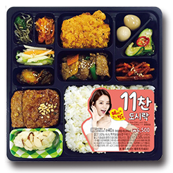 편의점 도시락의 반찬 경쟁이 ‘11찬’까지 왔다. 맛과 구성은 합격점이다. 도시락을 먹다가 반찬이 부족한 경우는 없다.멸치볶음, 오이지무침, 닭다리통살튀김, 메추리알, 호박볶음, 볶음김치, 버섯돈육볶음, 감자볶음, 진미채, 맥적구이, 칵테일새우튀김 등 11가지 반찬이 들어있다.
