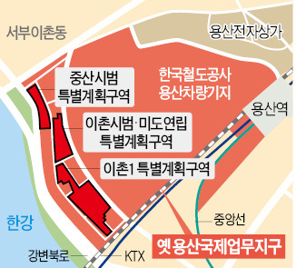 용산국제업무지구 사업이 무산되면서 장기 침체에 빠졌던 서울 이촌2동(일명 서부이촌동) 일대 개발 사업의 숨통이 트일 전망이다. 2013년 말 도시개발구역에서 해제되며 관리 사각지대에 놓여 있던 서부이촌동 재건축 활성화를 위해 서울시가 용도지역 종상향과 용적률 기준 완화라는 유인책을 내놨다.