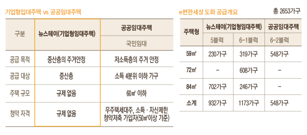 뉴스테이는 지어서 공급하는 데 그치지 않고 민간기업의 임대관리가 이뤄진다는 점에서 기존 공공임대주택과 비교된다. e편한세상 도화의 경우 시공사인 대림산업이 입주 후에 임대 및 시설관리까지 맡게 된다.
