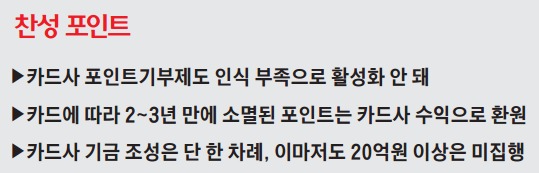 찬성 / 한해 소멸되는 포인트 1천억 넘는데 기부는 찔끔…카드사 수익만 챙겨