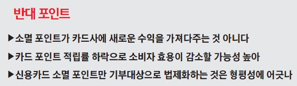 반대 / 카드사들 포인트 적립률 낮추게 해 소비자 혜택 오히려 줄어들 우려